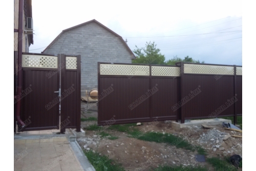 Декоративное полотно придаёт калитке эффектный внешний вид.