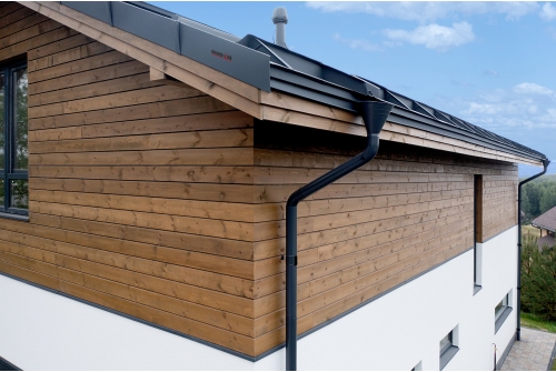 Большая водопропускная способность водостока позволяет собирать осадки с большей поверхности кровли, что приводит к экономии на количестве водосточных труб и сопутствующих элементах.